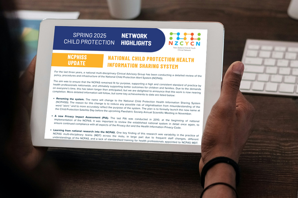 The Paediatric Society of New Zealand’s Child Protection Clinical Network is a multidisciplinary group composed of nurses, social workers, allied health professionals, doctors, managers, and funders, all committed to leading child protection and domestic violence initiatives within Te Whatu Ora.